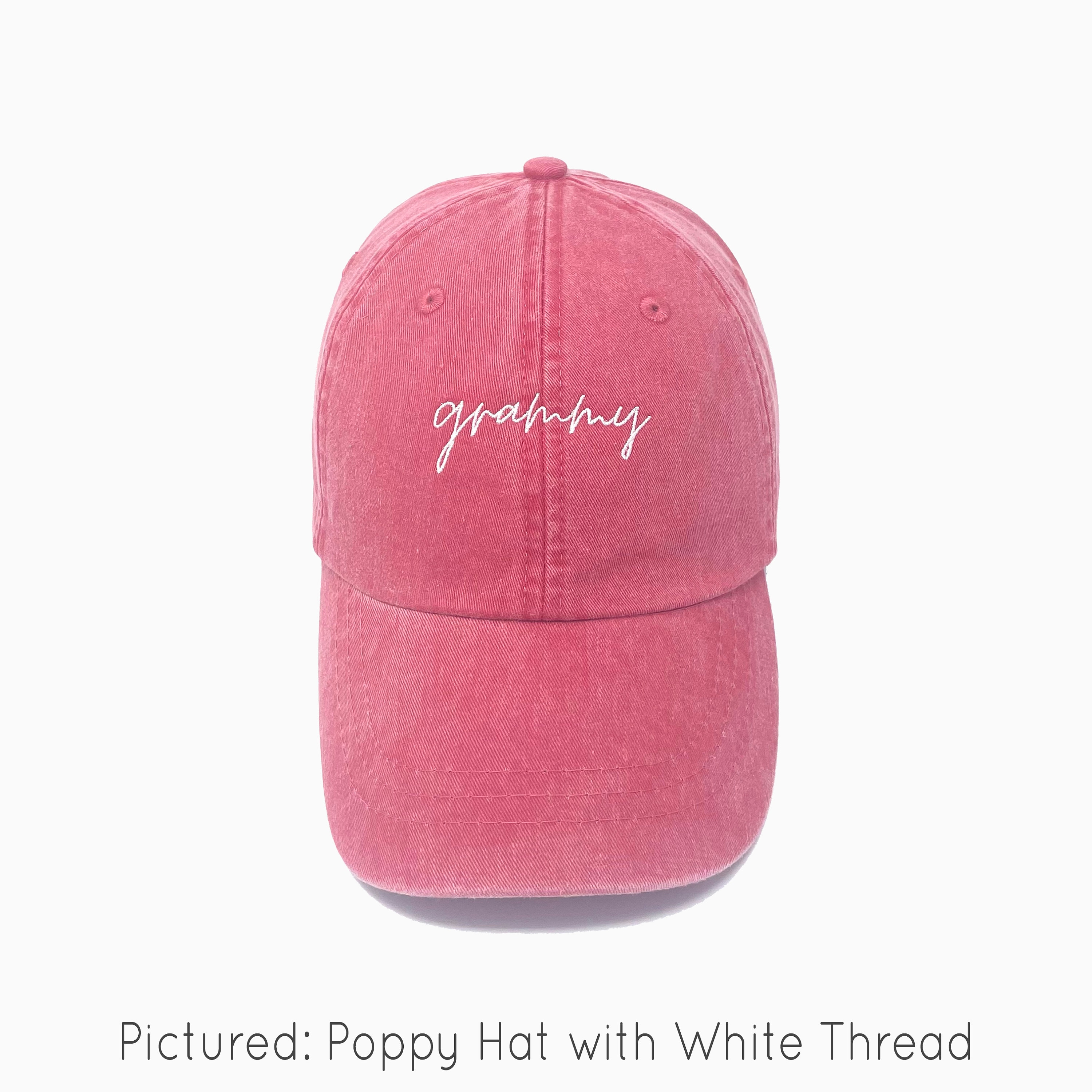 Pictured: Grape Hat with White Thread (First Picture). Poppy Hat with White Thread (Second Picture).