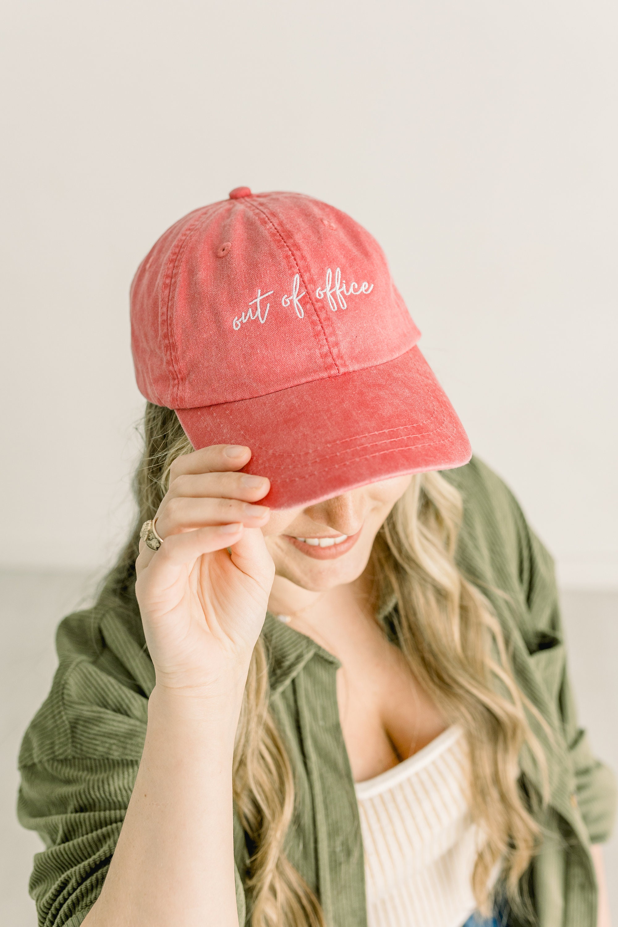 We use Adams brand caps that are made from high-quality 100% lightweight, breathable cotton; these are pigment-dyed and have a worn-in/lived in look to them similar to Comfort Colors! They are a perfect, everyday staple for all your outfits. On the back, there is a tuck-away leather back strap with antiqued brass buckle and grommet to size it how you'd like it to fit!