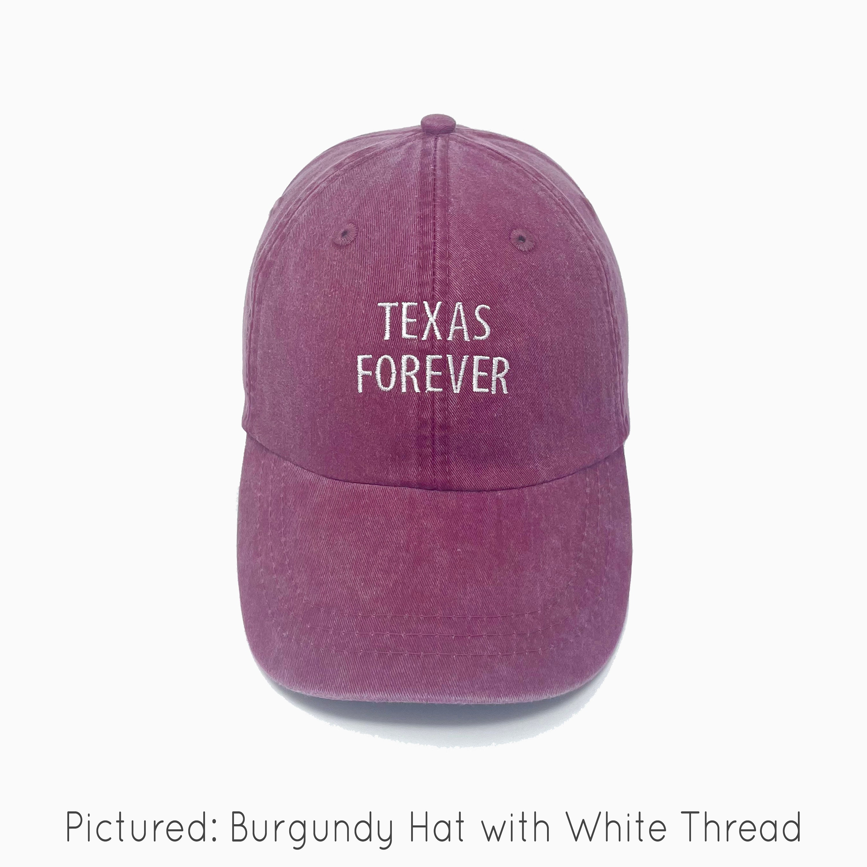 Pictured: Burgundy Hat with White Thread.