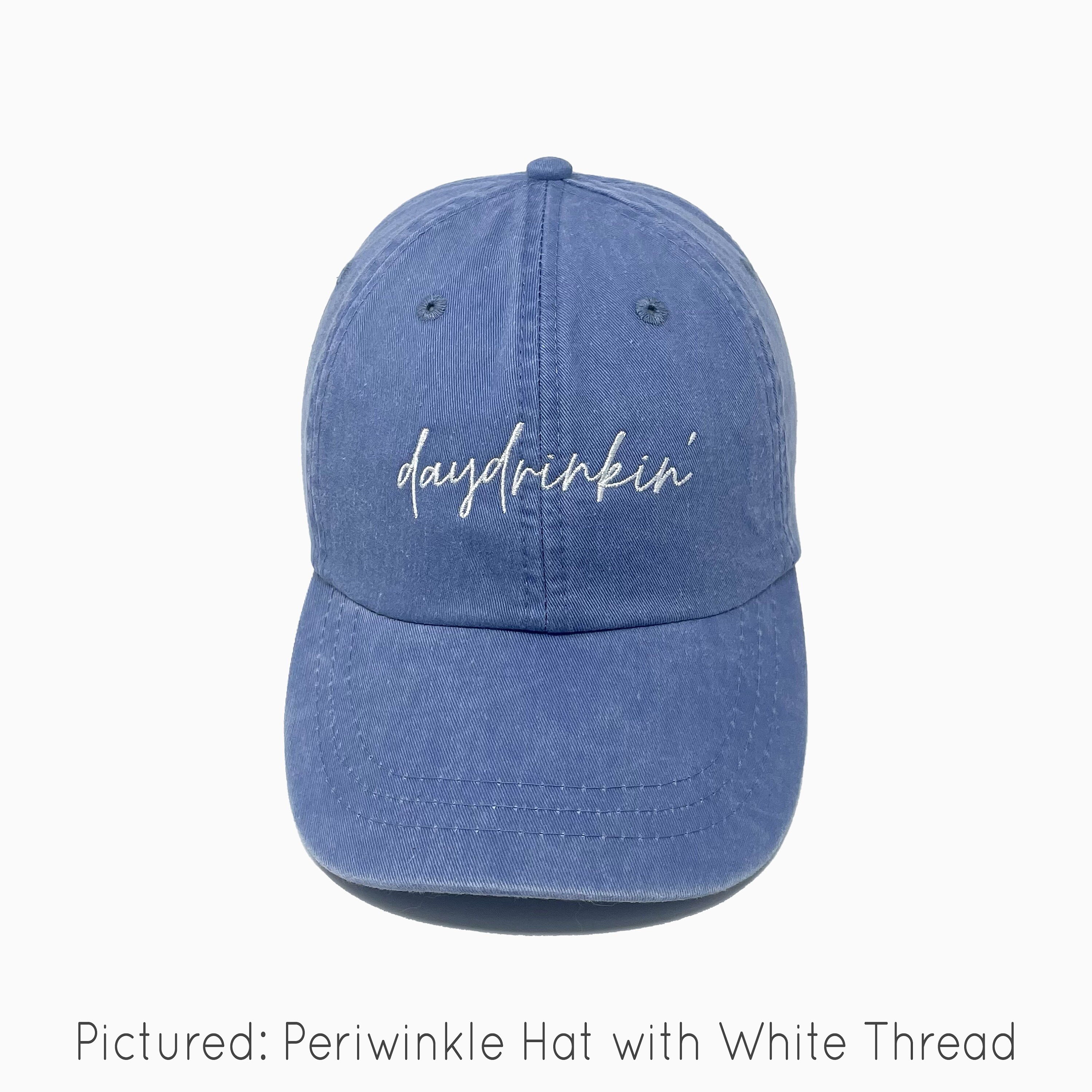 Pictured: Burgundy Hat with White Thread (1st Picture), Periwinkle Hat with White Thread (2nd Picture).