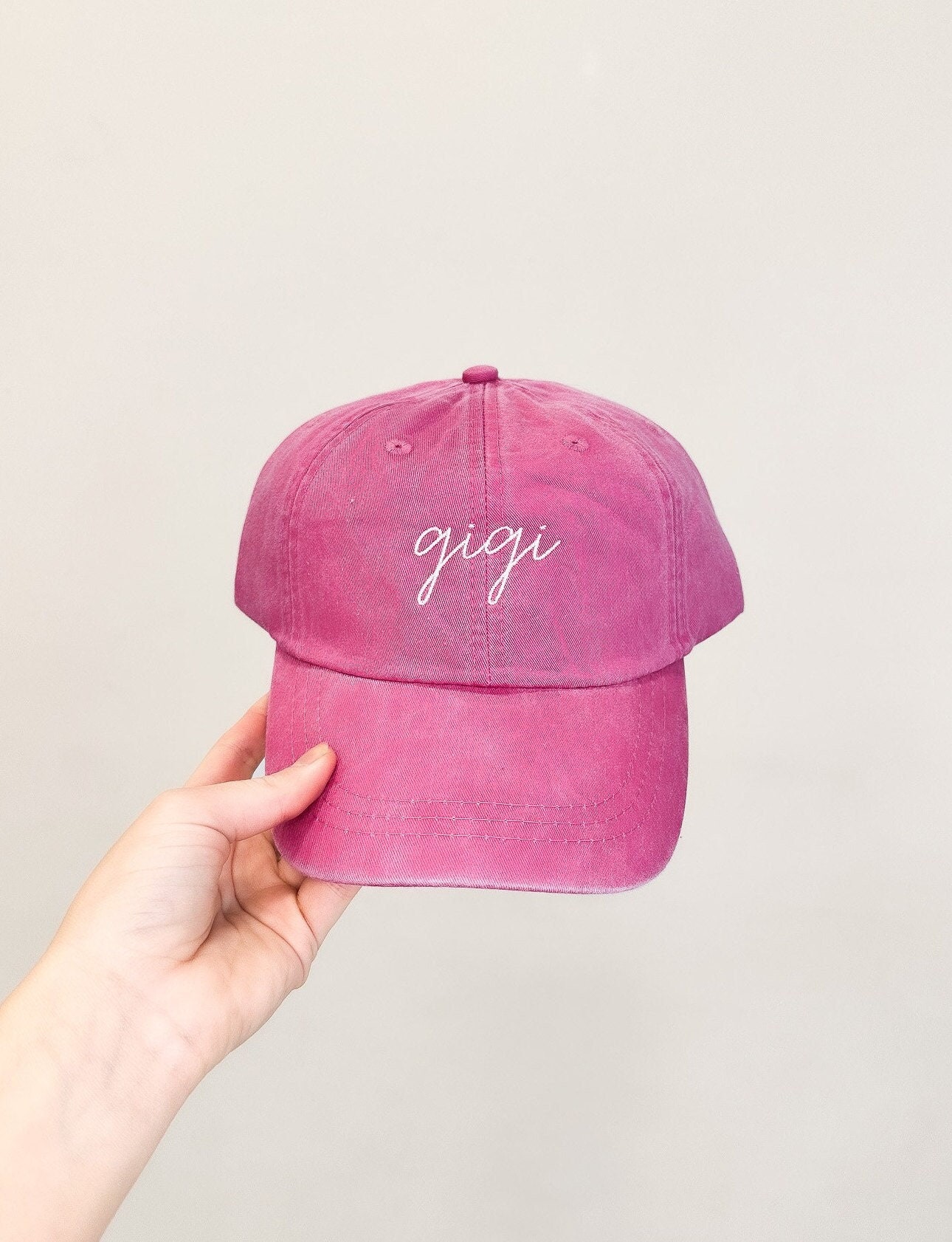 Pictured: Hot Pink Cap with White Thread.