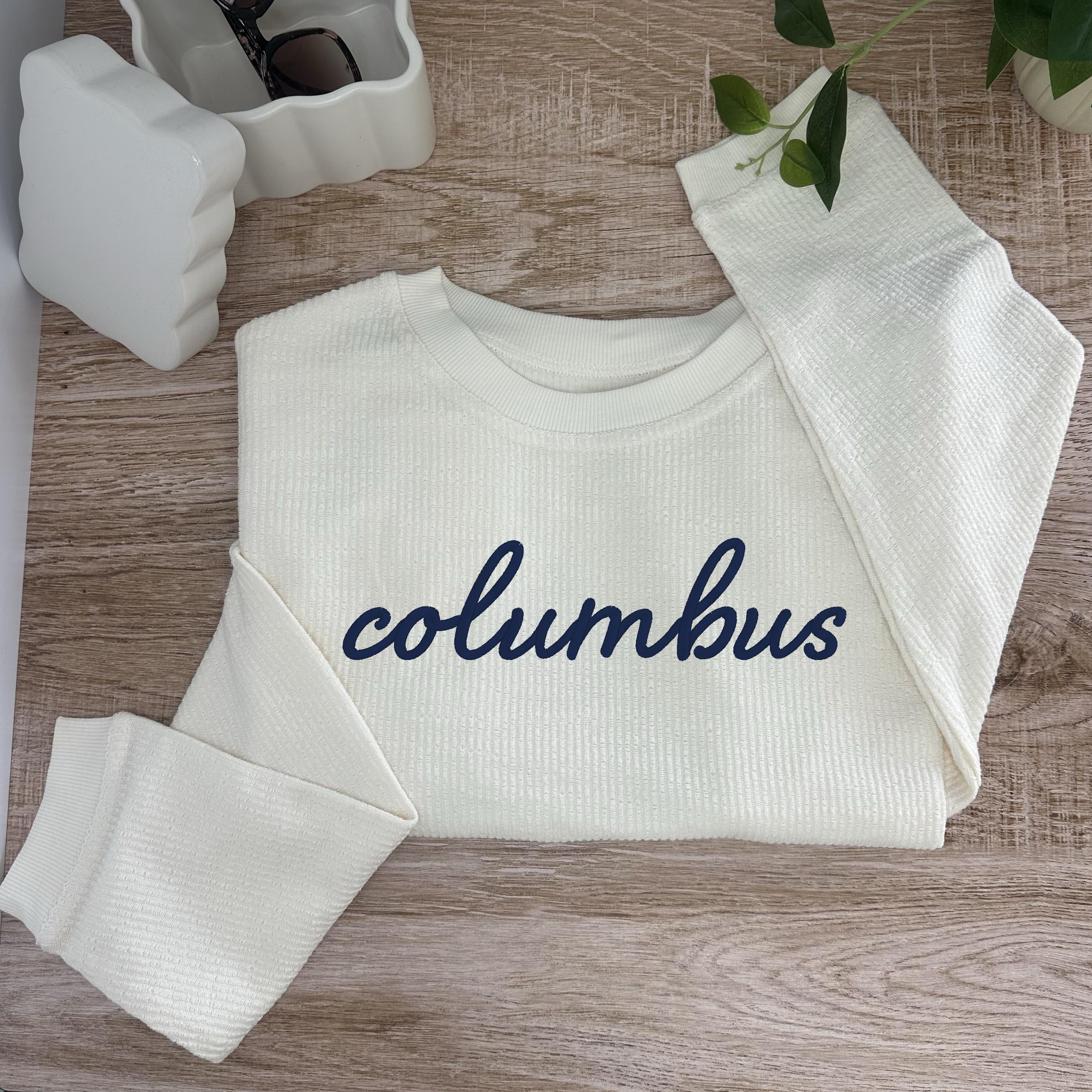 Color Pictured: Natural pullover with Navy (30001) thread. This is a digital mock-up; design may vary in the slightest due to differences in screens!