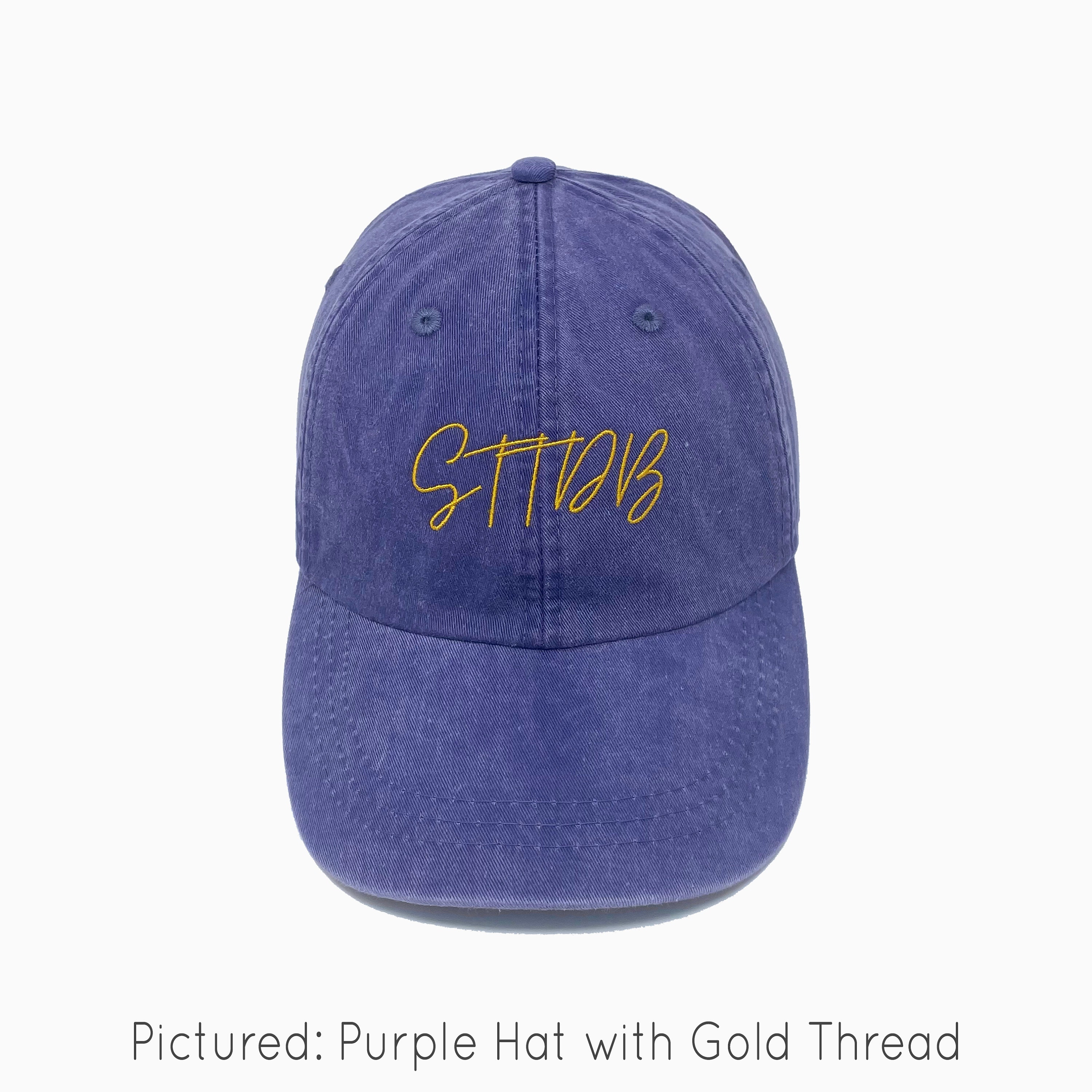 Pictured: Purple Hat with Gold Thread.