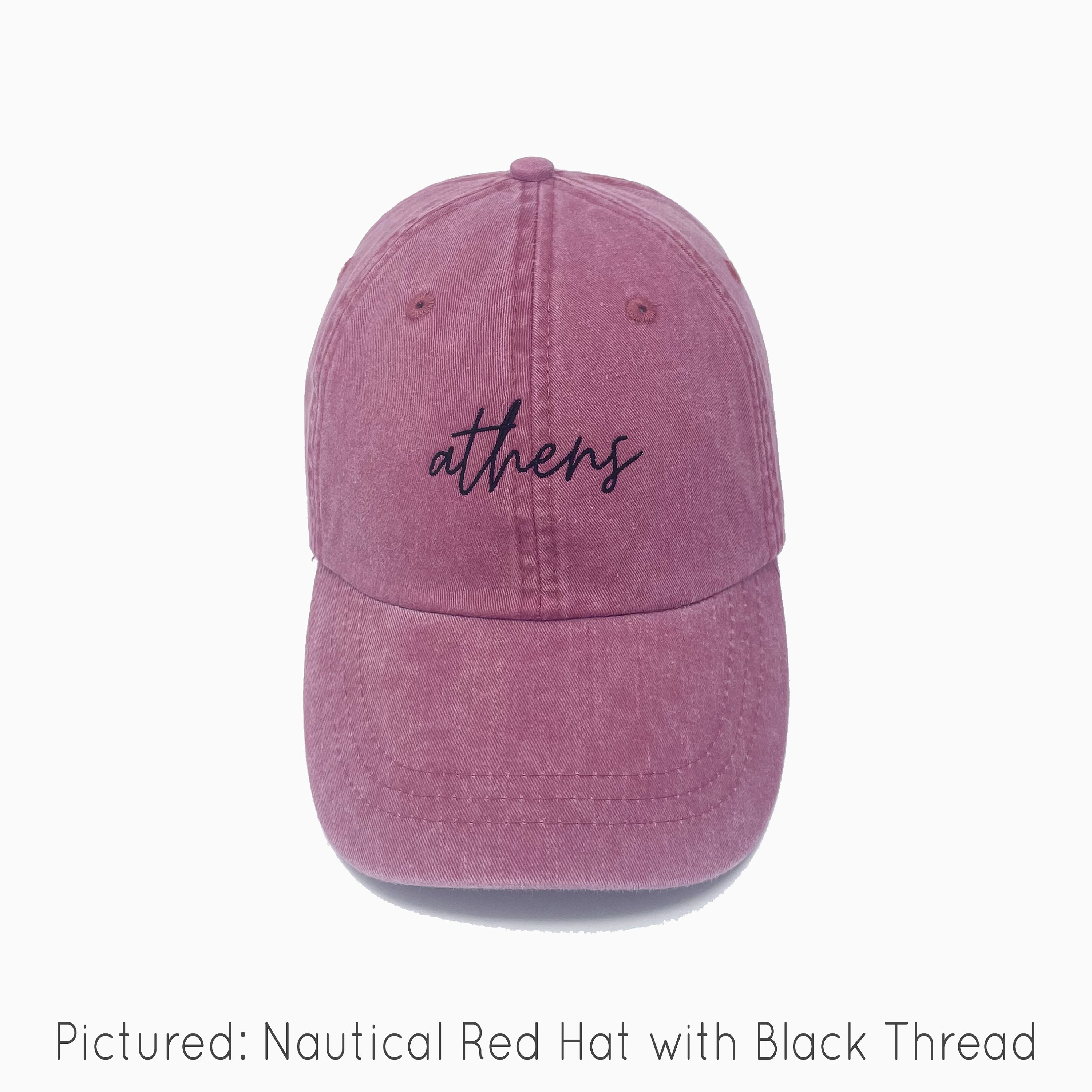 Pictured: Nautical Red Hat with Black Thread.