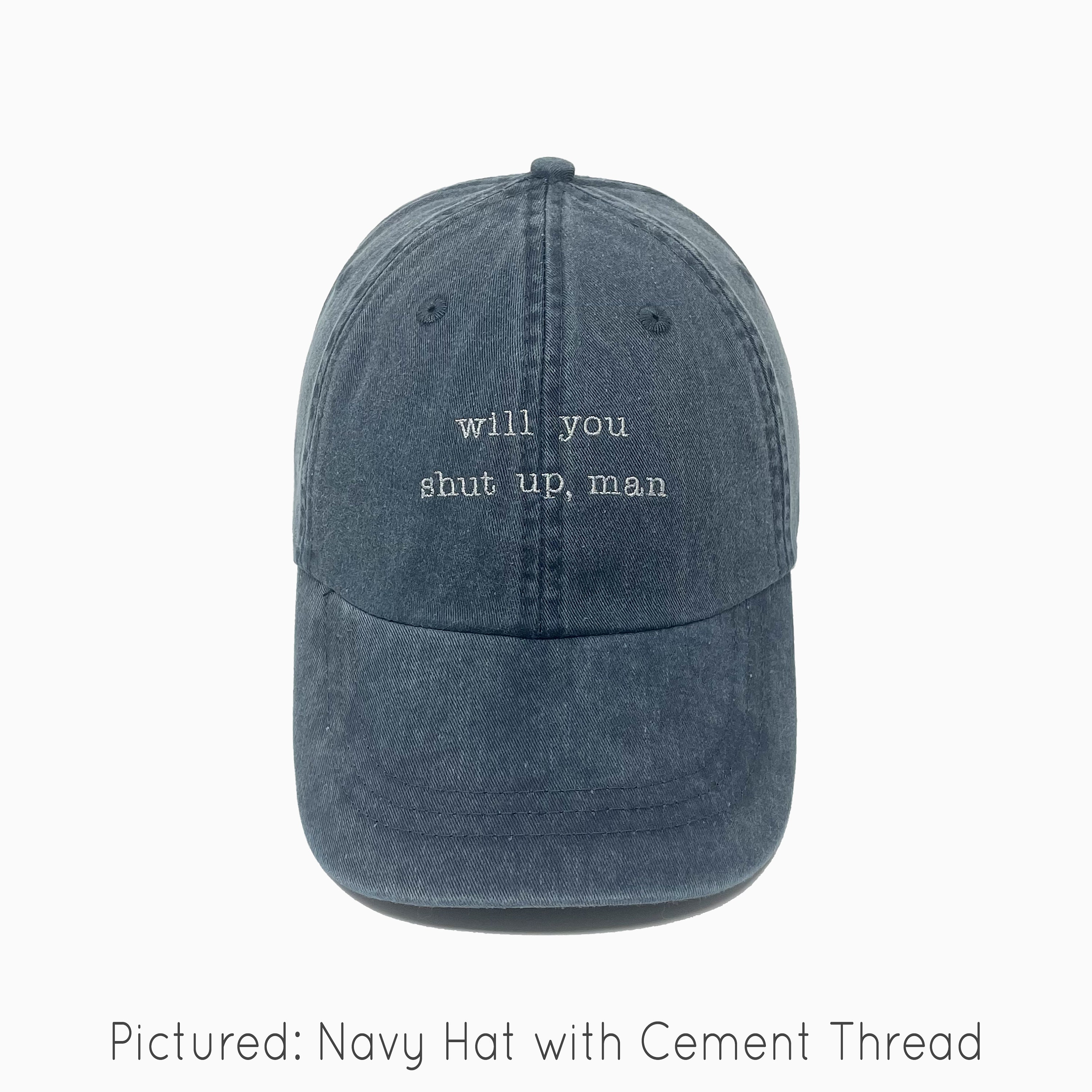 Pictured: Navy Hat with Cement Thread.
