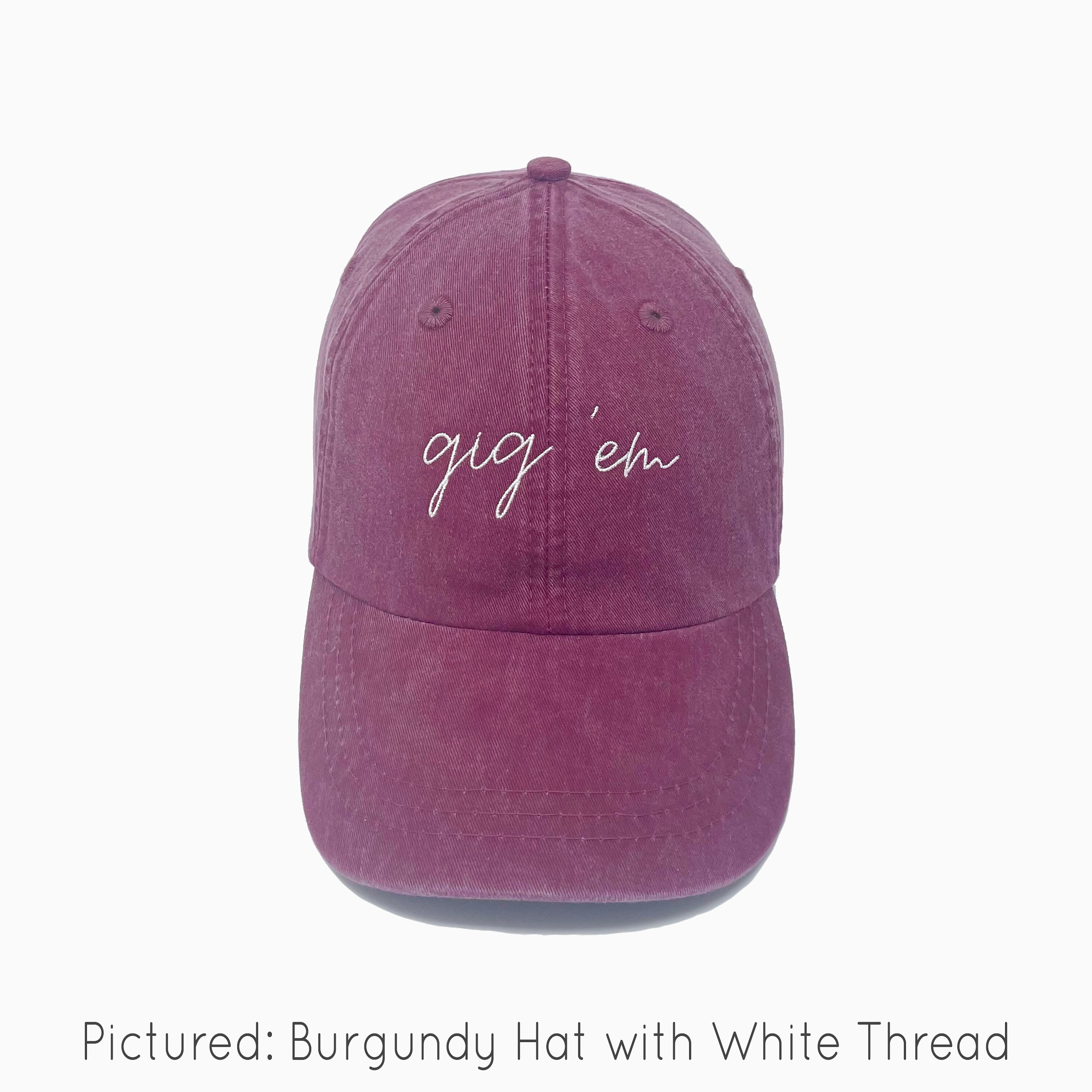 Pictured: Burgundy Hat with White Thread.